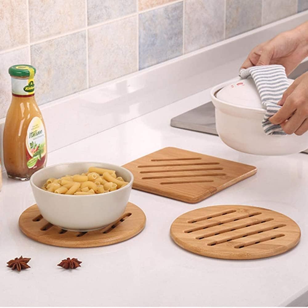 DescriptionMade of premium Wooden,durable for long term use. Anti-heat insulation, suitable for a variety of high temperature environment. Simple hollow design, can prevent the temperature is too high. Smooth edges, won't hurt your hand.Features- Color: As shown.- Material: Wooden.- Size: About 15 x 15 x 0.75 cm.- Suitable for bowl, pan, cup, casseroles and more.Package Including2 x Wooden coaster