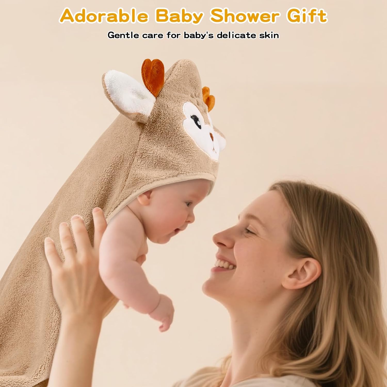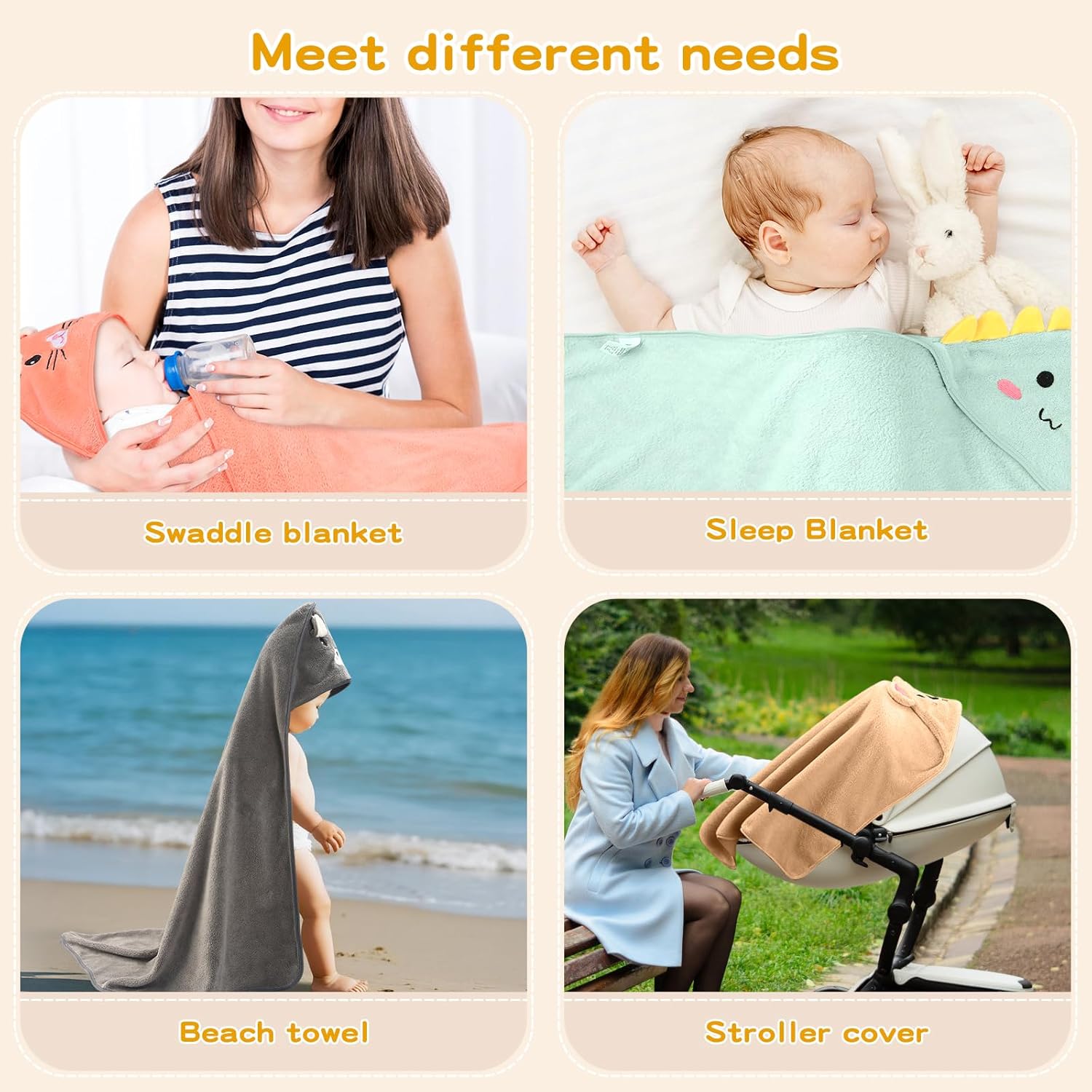 Wrap Your Little One in Joy & Safety!Every bath time becomes a cozy adventure with our 6 Pack Hooded Baby Towels! Crafted for delicate newborn skin, the Premium Coral Fleece baby towels for newborn cocoons your baby in ultra-soft, hypoallergenic protection – no more post-bath redness or chills.Why Parents Love Our Towels:✅ Bath-Time Bliss: Our Highly Absorbent baby bath towels lock moisture in seconds with advanced water-wicking tech. Perfect for splashing in tubs, pool days, or beach trips – keeping babies toasty dry even on the wiggliest toddlers!✅ Giggles Guaranteed: Watch eyes light up as hoods transform into 6 playful friends! The Fun Animal Hooded Baby Towels (Brown Koala, Gray Elephant + more) spark imagination while shielding wet heads from drafts.✅ Grows With Your Child: At 31.5"x31.5", these Spacious Toddler Towels swaddle newborns snugly yet fit energetic 6-year-olds. Ideal for daycare, travel, or post-swim snuggles – one set covers ALL stages!✅ Smart Savings & Care: The 6-Pack toddler towels with hood solves laundry chaos! Machine-wash daily without fraying, and gift-ready packaging wows baby showers (hint: new moms adore the Orange Cat hood!).