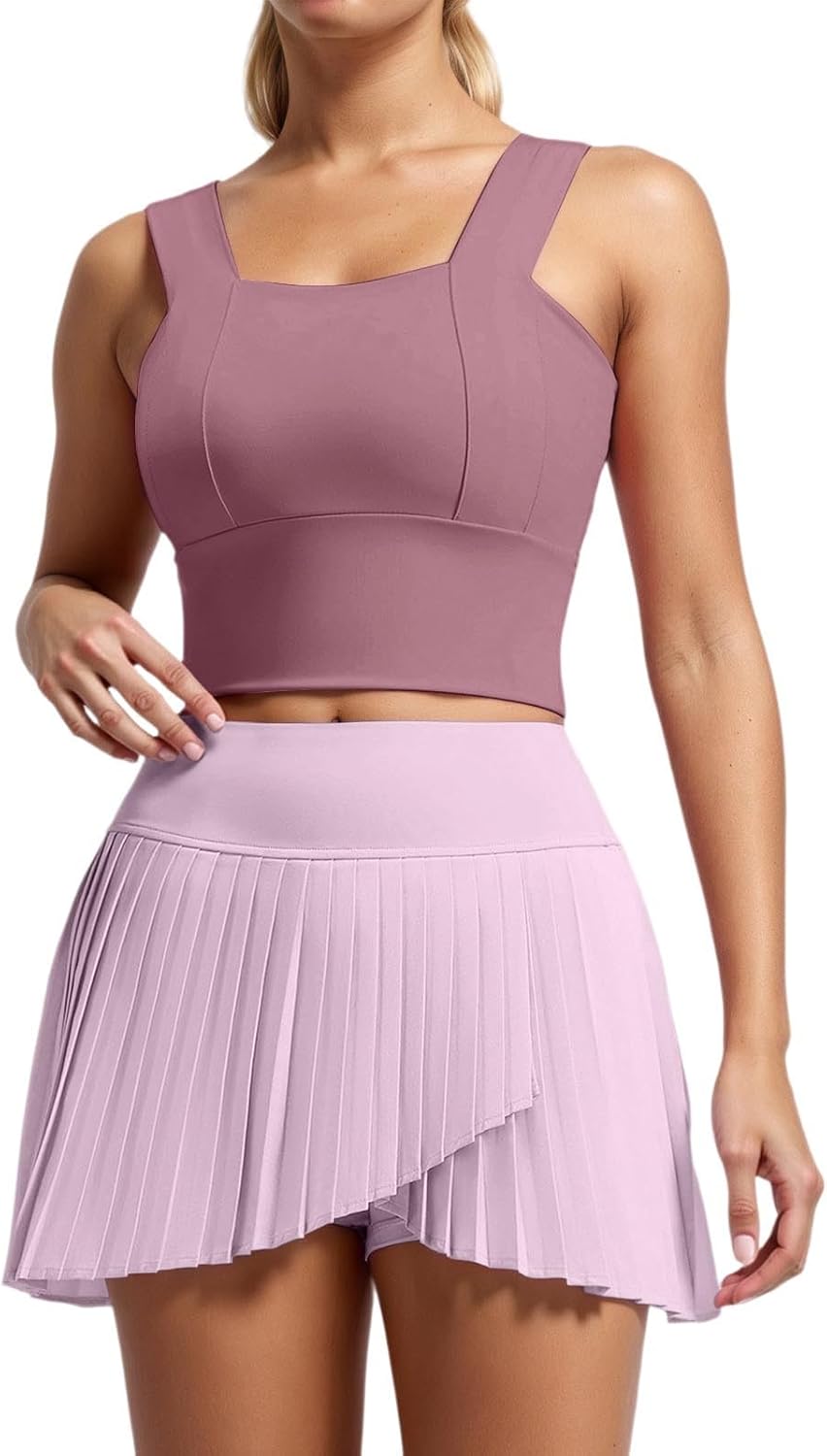 Athletic Dress Tennis Dresses Golf Workout Outfit Spleated Active Skort Set With Shorts Underneath,Pockets