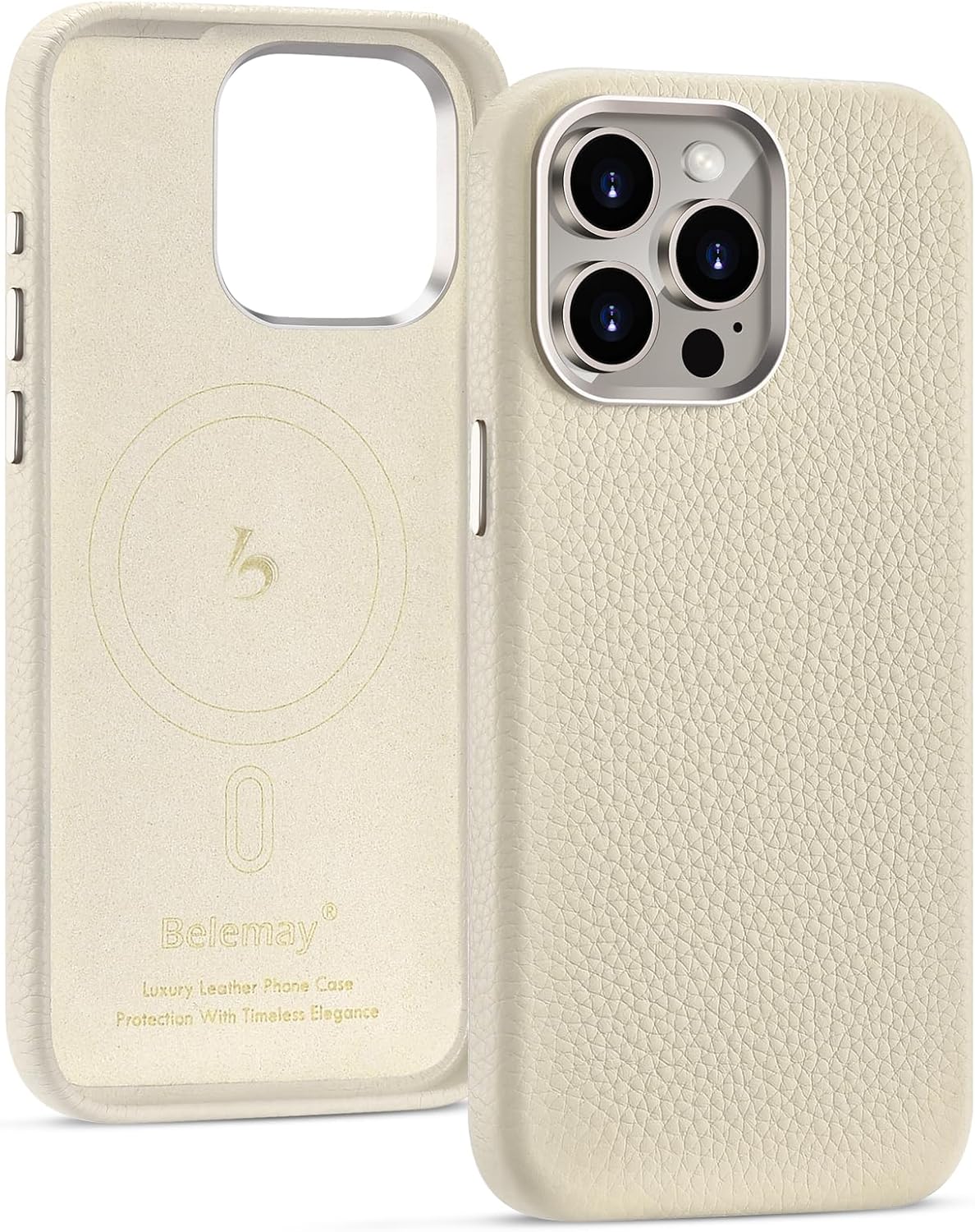 Exploring More Possibilities in Material and Craftsmanship Elevate your iPhone 13 Pro experience with Belemay Luxury Leather Case featuring a sophisticated texture. Crafted with precision, this case boasts metal buttons for tactile responsiveness and a raised camera bump for enhanced protection. Its slim profile ensures your phone's sleek design remains intact while safeguarding it from scratches and minor impacts. The soft lining inside keeps your device pristine. Upgrade your style and safeguard your device simultaneously with our premium leather case. Features *Premium textured leather *Interior lined with soft microfiber *Metal buttons for a tactile and responsive experience *Metal rear-camera bump for enhanced protection *Raised edge protect screen *Strong and secure MagSafe *Streamlined design: Slim and Lightweight Materials *Shell material: Top-grain cowhide leather *Lining material: Microfiber *Buttons: Aluminium (CNC machined) *Camera bezel: Aluminium (Electrophoretic) *Ports: Laser positioning and cutouts *Frame: PC with TPU sidewalls MagSafe compatible Yes Wireless charging compatible Yes Compatible Phone Model Compatible with iPhone 13 Pro (6.1''Display Diagonal-Double Camera)