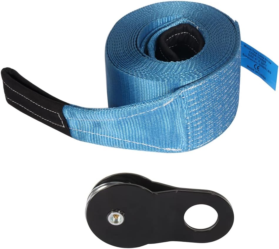 SPEC:Snatch Block Material: SteelColor: BlackFinish: Black powder coatingLimited load capacity: 20,000 lb (9 ton)Product Length: 10-5/16"Product Width: 5-1/8"Package Including:1 pcs Snatch Block (20,000 lb)1 pcs Tow Strap