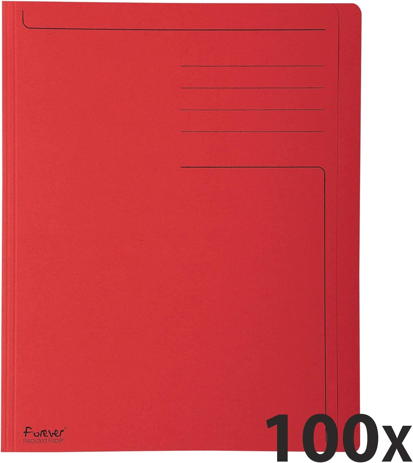 Exacompta Forever Square cut folders are made from 280 g recycled card. Folders are 24 x 32 cm in size and can hold A4 documents. Folders are suitable for use within a filing cabinets suspension folder. Pack of 100 in the same colour