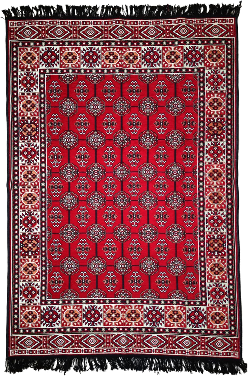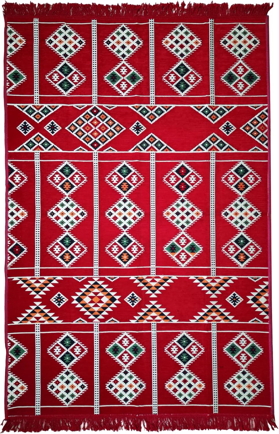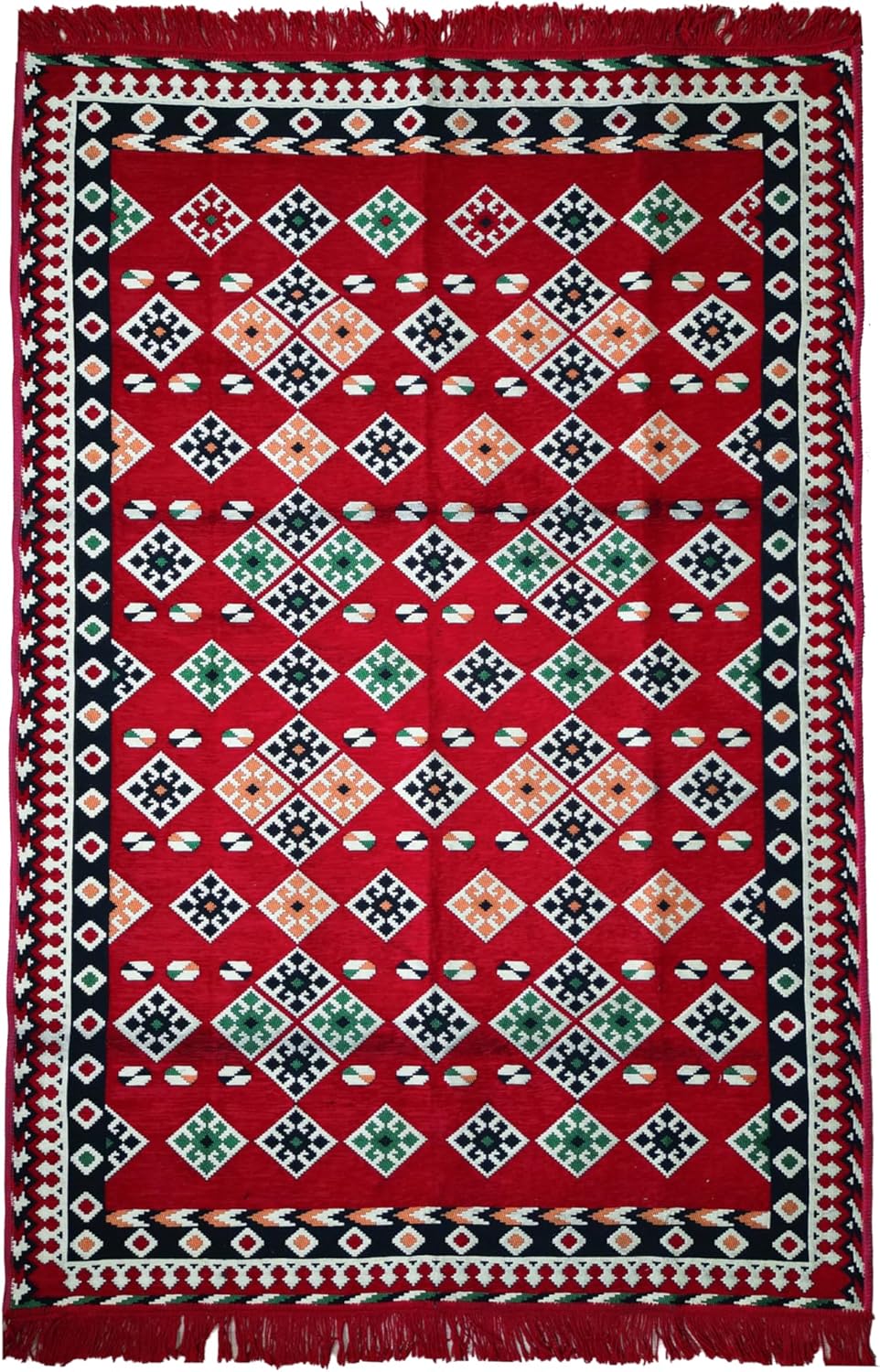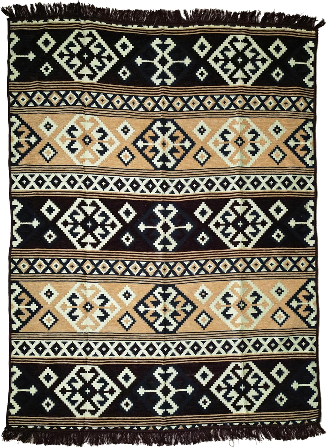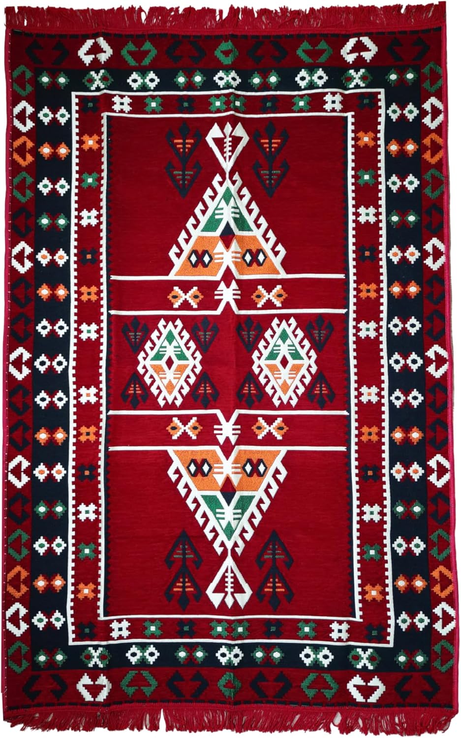 Bring Turkish kilim character to your home with a 4' x 6' indoor area rug designed for real life. This low pile, flatweave rug features boho tribal geometric styling with classic fringe ends, giving you an easy way to refresh a living room, bedroom, entryway, office, dorm, or apartment. Woven from a practical 40% cotton / 60% polyester blend, it offers a softer touch with added durability, while staying lightweight for quick room changes. Care is simple: this rug is machine washable—use a gentle cycle when needed and lay flat to dry. It’s also foldable, so it stores neatly, travels easily, and works great for seasonal decorating or moving. For best comfort and grip on smooth floors, pair with a rug pad. Colors may vary slightly due to lighting and screen settings.