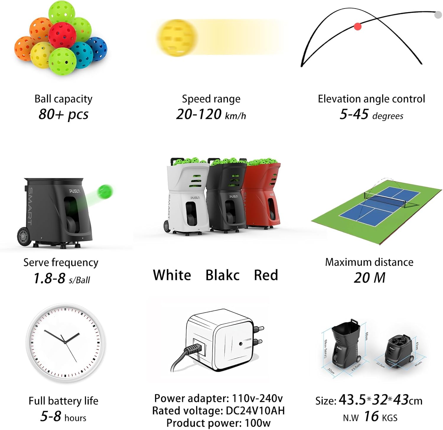 | Included Components | Charger for battery, Lithium battery, Pickleball machine, Remote control |
