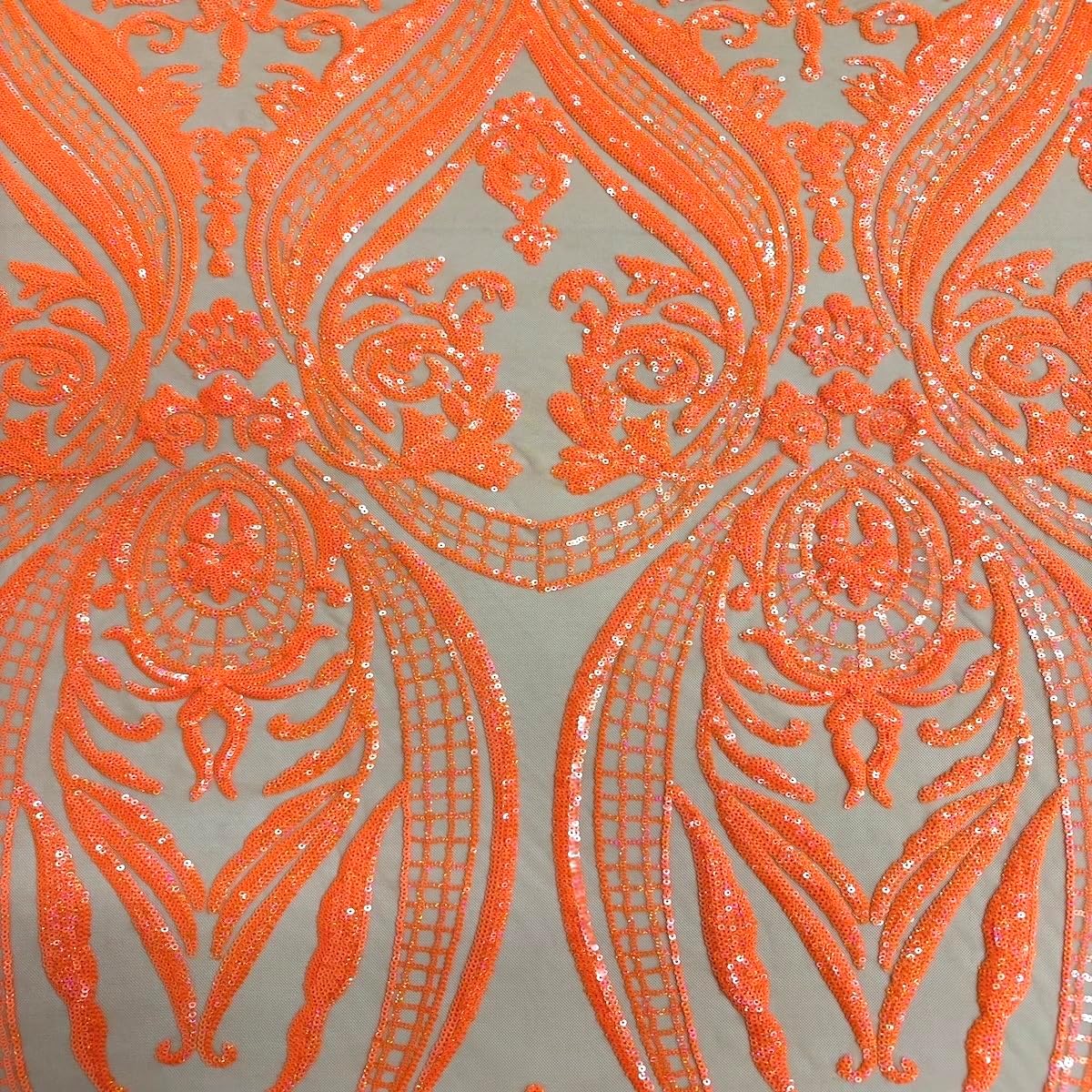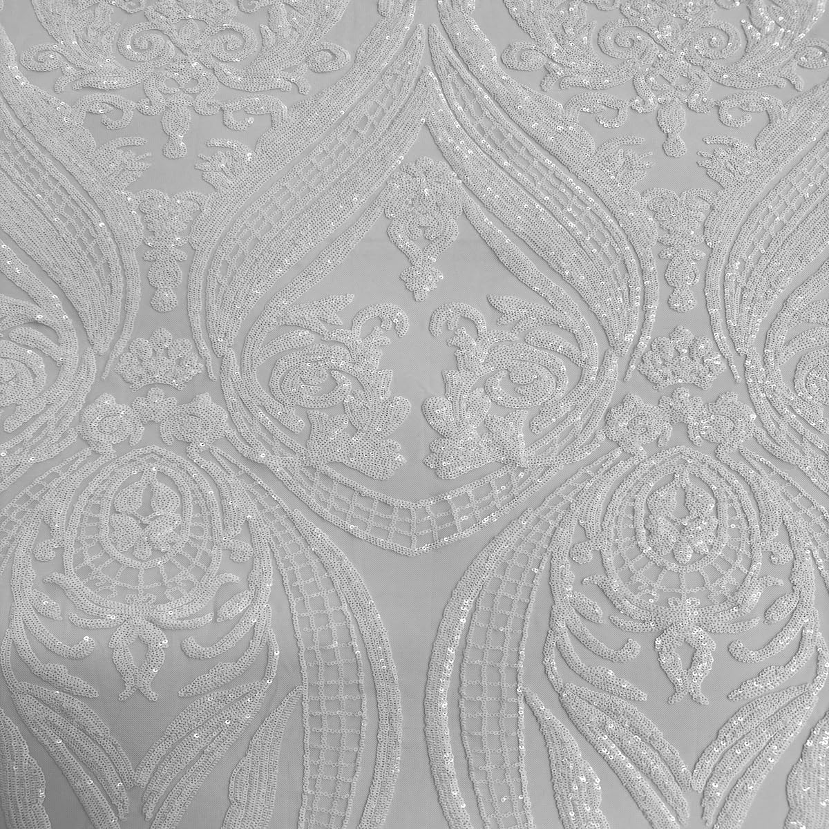 Image may look different due to setting on computer screen.This beautiful and elegant Catina Sequins Lace Fabric is one of a kind. The fabric is backed with a four way stretch nylon mesh fabric along with a beautiful sequin design all around the fabric. Item is sold by the yard. If more than one yard is purchase, you will receive your fabric in a continuous piece. For example, if two yard are ordered, you will receive a piece containing 60" x 72".Uses: Apparel, Dresses (Prom, Wedding, Evening) , Accessories, Handbags, Table Skirts, and much moreContent: Nylon / Spandex / MeshWidth: Mesh 60" | Sequins 52"/54"Wash: Dry Clean RecommendedNo samples can be provided.