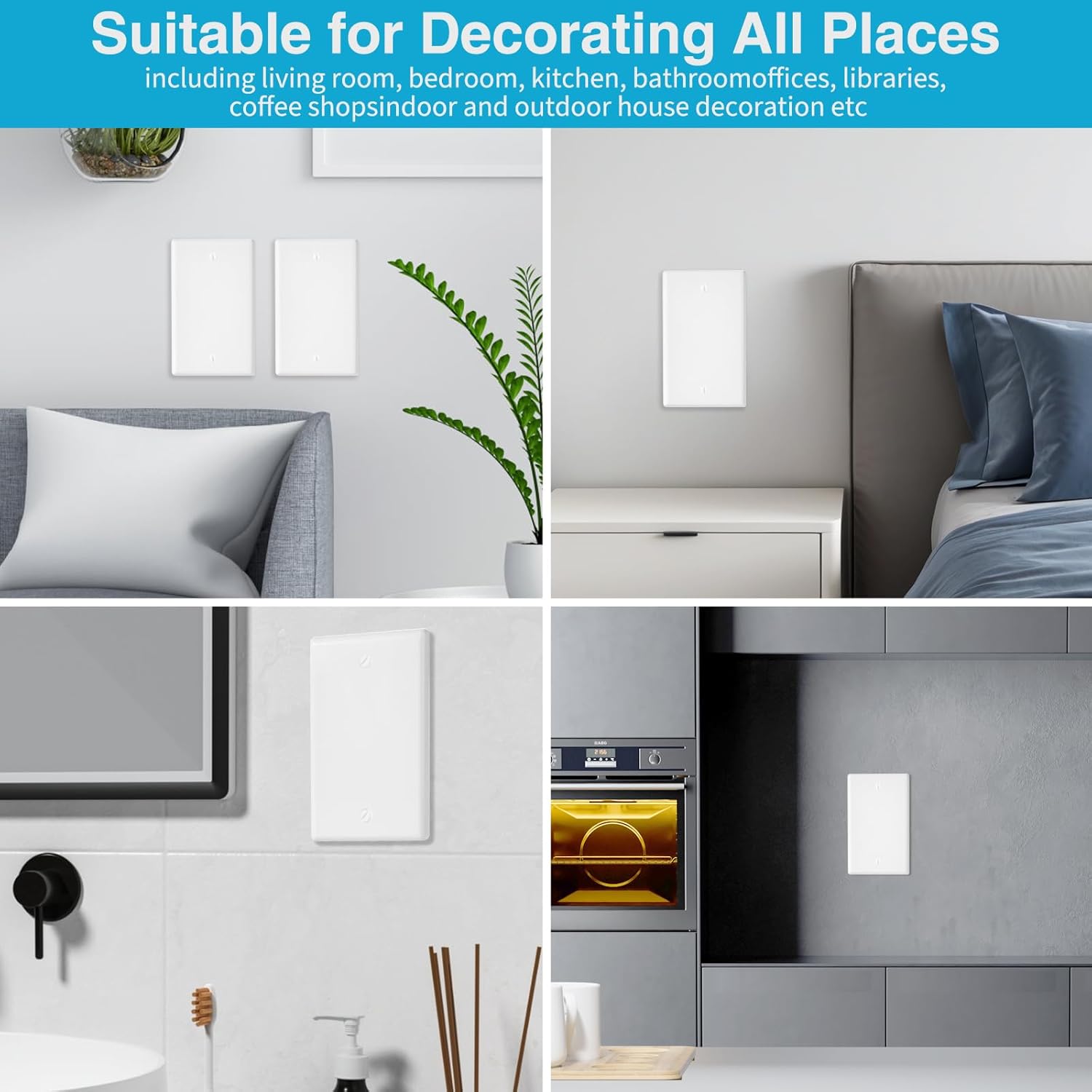 ZHNVZM 10 Pack Blank Wall Plate Cover No Device Blank Outlet Switch Electrical Cover Plate Polycarbonate Thermoplastic Gloss Finish for Unused Outlets/Switches