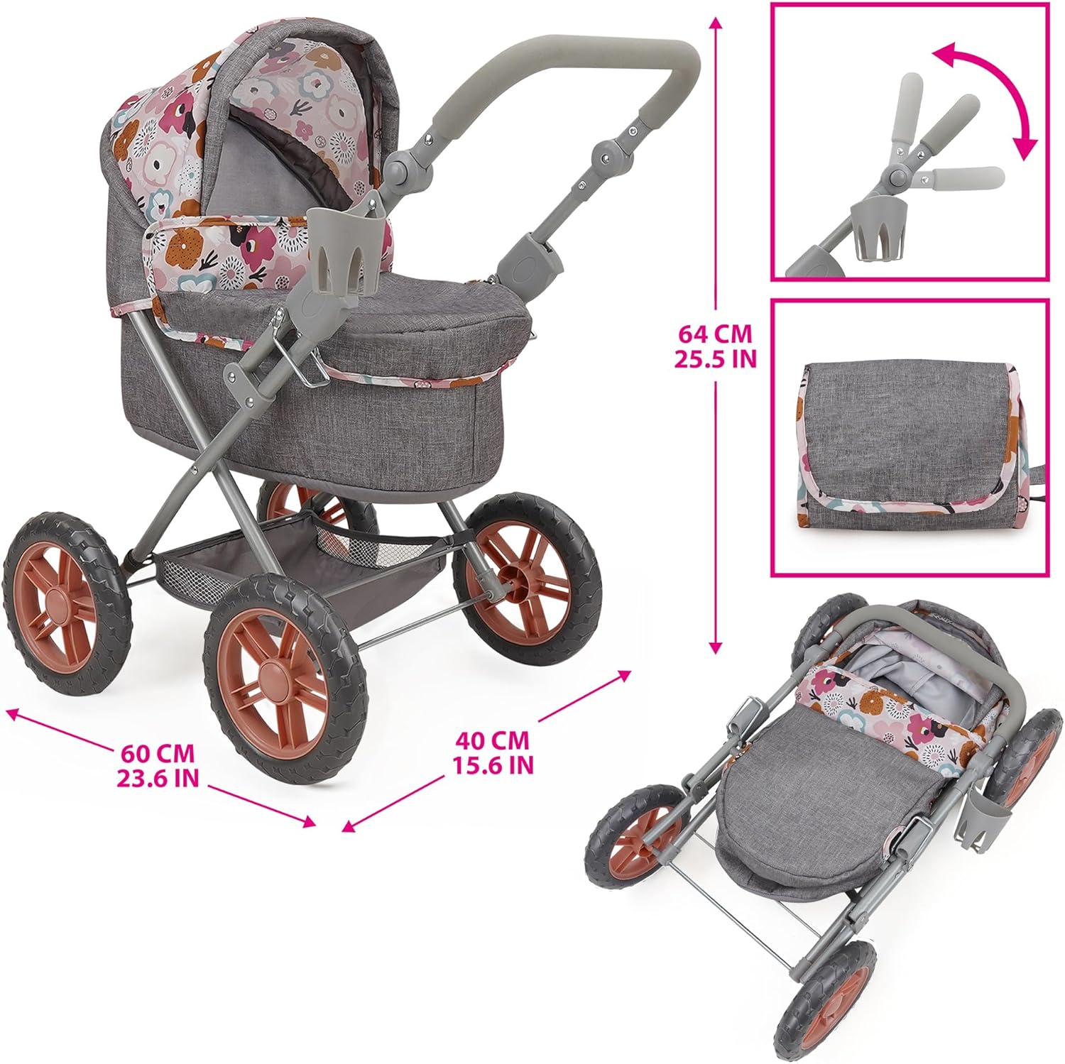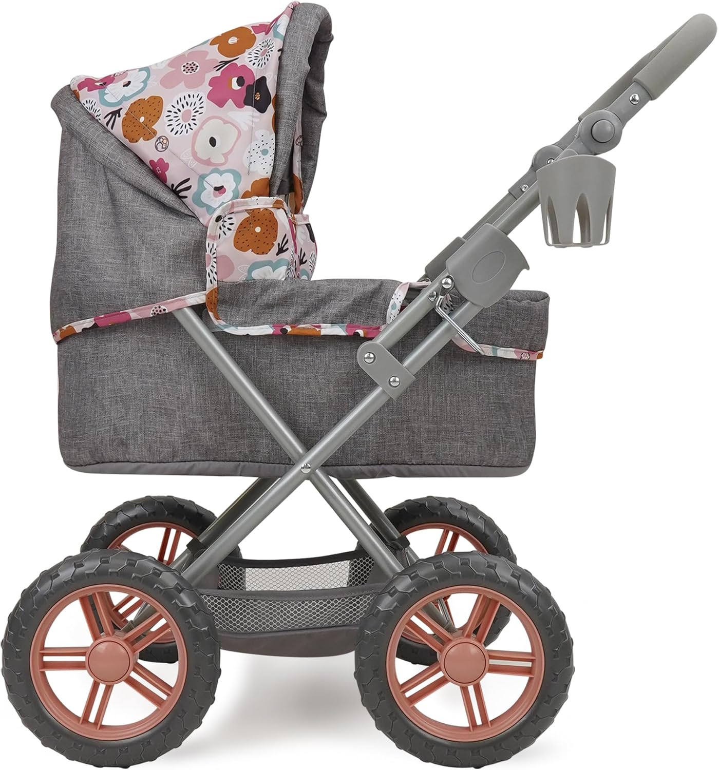 509 CREW: MELANGE FLORA - AMANDA DOLL PRAM - The 509 Crew Amanda Doll Pram is a charming blend of classic elegance and modern flair, featuring a delightful Melange Flora pattern that will captivate little mommies and their dolls. Designed with both style and functionality in mind, the Amanda pram comes equipped with a large canopy, a spacious shopping basket, a comfortable adjustable handle, a cup holder, large wheels, a removable bassinet, and a matching bag. It offers the perfect mix of fantasy and real-life parent role-play, making it an ideal companion for young parents to care for their favorite dolls and plush characters. REALISTIC ROLE-PLAY: Perfect for imaginative play, this doll accessory allows little parents to care for their favorite dolls and plush characters in a realistic and engaging way. SAFETY LOCK SYSTEM: Designed with a safety lock system that prevents sudden or unexpected collapses; both side safety latches must be lifted to fold the pram securely. Ensuring a safe and smooth experience. ***Doll not included.*** Suitable for girls & boys ages 3 and up.