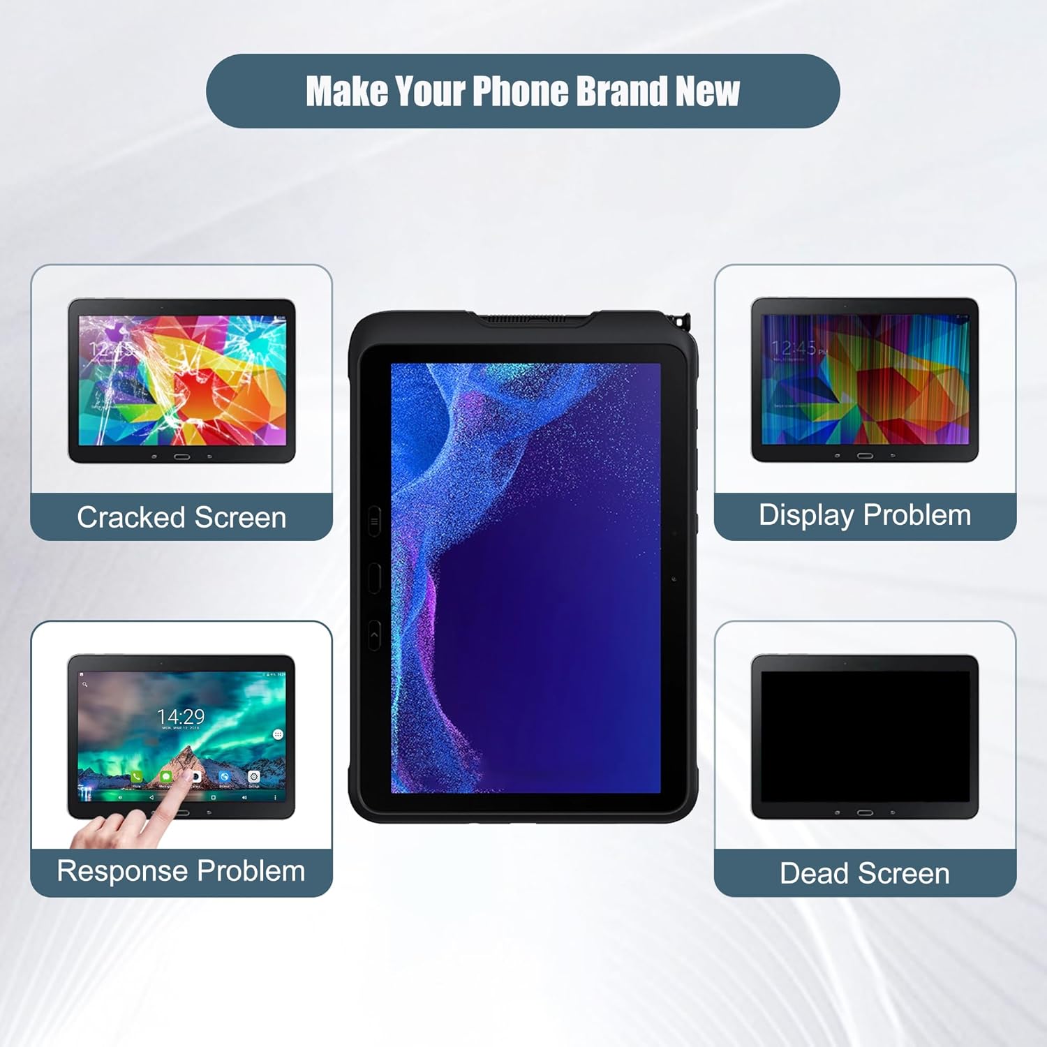 Item SpecsType:TFTGlass:LCDResolution:1920x1200pixelsPackaging: 1 x LCD,1 x toolsCompatible withSamsung Galaxy Tab Active 4 Pro SM-T630 SM-T636B LCD displayA few tips for intallation1.When you receive the screen, please check if it is in good condition. If the item is damaged on arrival, please let us know by sending us a message.2.Please carefully remove your cracked screen and connect the new screen to the mainboard,then turn on your phone to see if it works before installation. A hair drier will help you to remove your cracked screen.3. The cable on the screen is very fragile, do not bend it hard.4.There're lots of instruction videos on internet, you can watch some videos to learn how to fix it or find a professional technician to help with you.How to protect your cellphone screen1.Do not put your phone together with keys, coins or other metalworks, because these things may scratch your phone screen.2. Use a screen protector to protect your screen.3.Keep your phone away from Magnetic materials, because the magnetic materials may cause dead touch if you put them together for a long time.4.Do not use a low quality third-party charger adapter to charge your phone, it will also damage your screen.5.Do not put it close to you when you sleep, because your careless hit may let it drop on the floor and the screen may got broken.Contact usIf you have any questions or any issues when using our product, please send us a messsage, we will answer you within 24hrs. Thank you for your time.